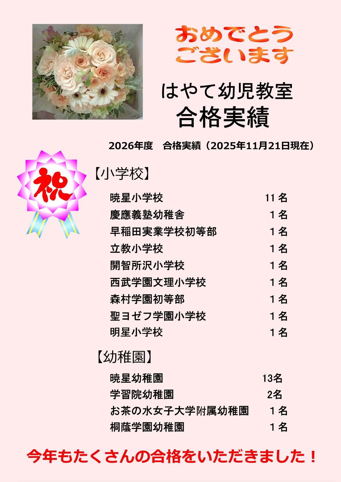 2026年度 合格実績(2025年11月27日 更新)
