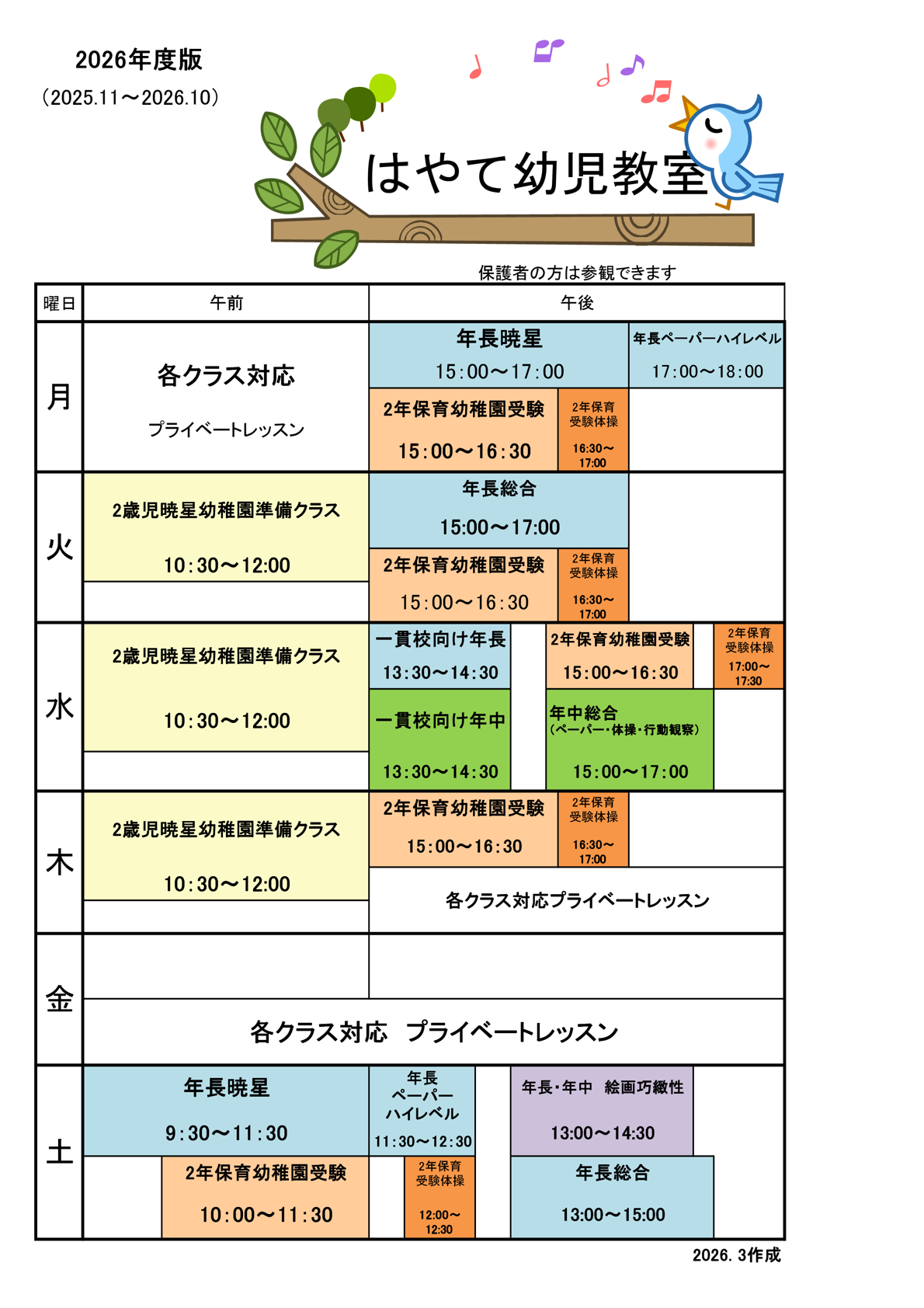 クラス別開講曜日・時間