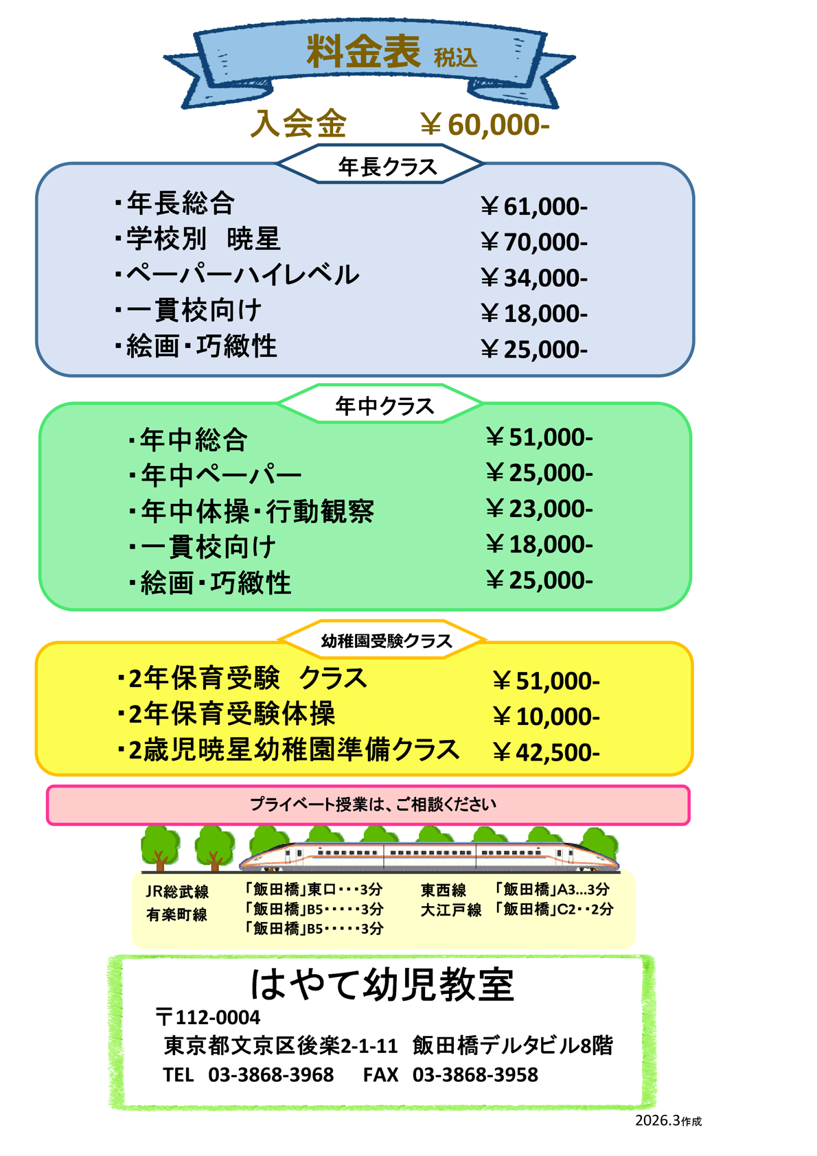 はやて幼児教室 ☎03-3868-3968